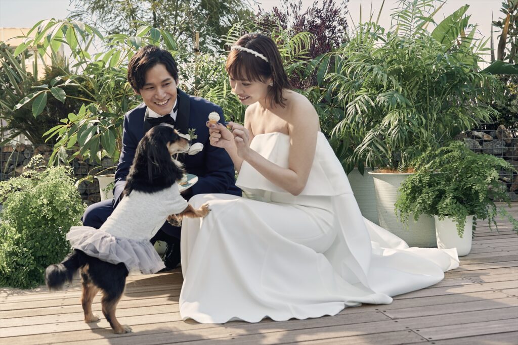 ②挙式演出でペットも活躍できる♪手形結婚証明書&リングドッグができる(パパが抱っこしてもOK)